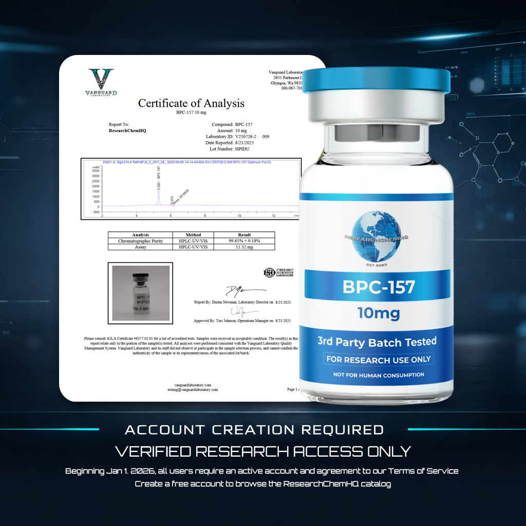 ResearchChemHQ.com provides chemical substances, specifically peptides, intended for use by scientists for medical and scientific research purposes. These substances are classified as research chemicals and are designed for laboratory research use only. They are not intended for human or veterinary use. This distinction is clearly marked on the labels of our research chemicals, which exempts them from regulation under parts 100-740 in Title 21 of the Code of Federal Regulations (21CFR). Customers are responsible for complying with all laws and regulations applicable to the use of products purchased from ResearchChemHQ.com. This includes, but is not limited to, those pertaining to the Toxic Substances Control Act (TSCA).