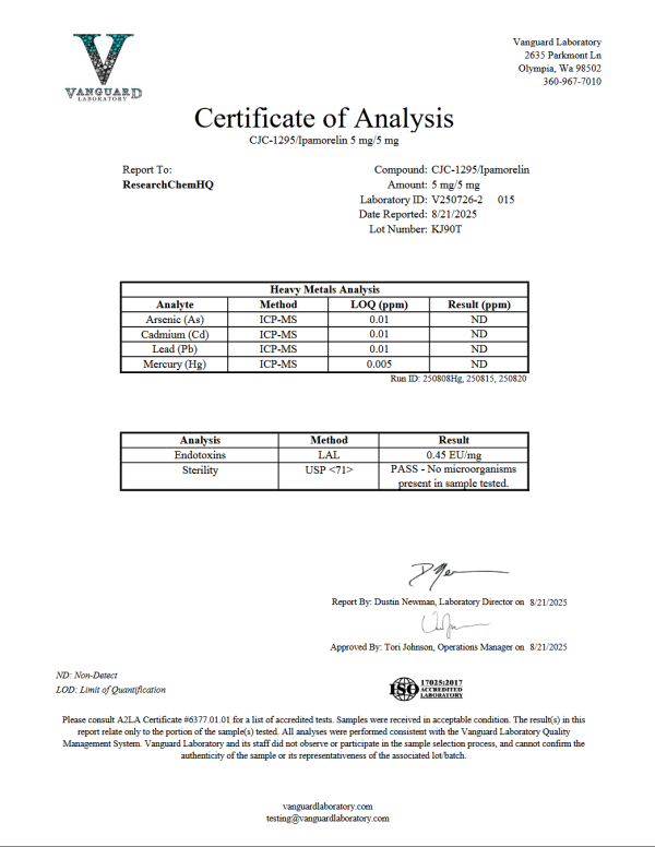 The CJC-1295 / Ipamorelin blend is a research peptide formulation that combines CJC-1295, a synthetic analog of growth hormone-releasing hormone (GHRH), with Ipamorelin, a selective growth hormone secretagogue. This pairing leverages complementary mechanisms: CJC-1295 promotes sustained increases in growth hormone (GH) and insulin-like growth factor 1 (IGF-1), while Ipamorelin selectively triggers a rapid, controlled GH pulse without significantly affecting other pituitary hormones. The product is strictly for laboratory research use and is not intended for human or veterinary application.