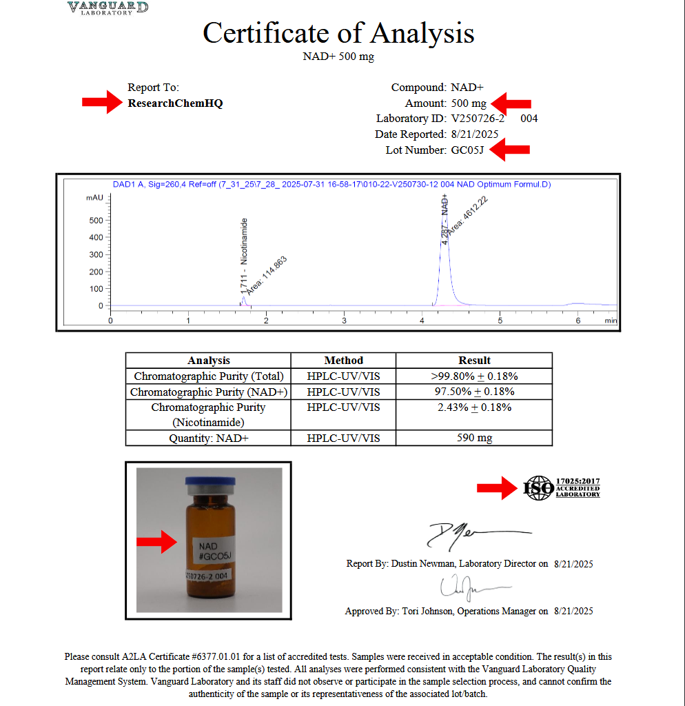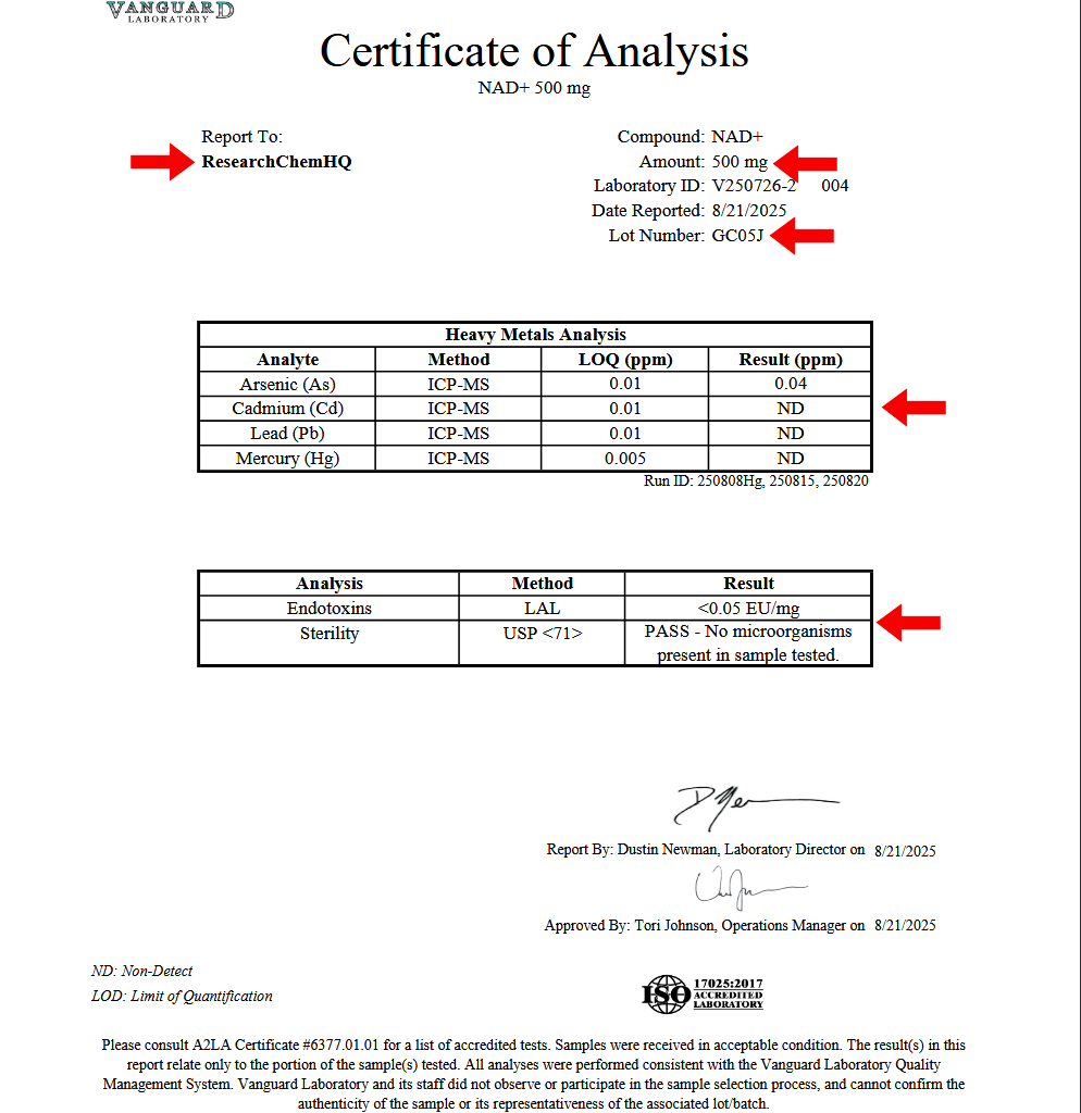 Independent ISO-Certified Testing – Each batch is tested through Vanguard Labs, an ISO-certified facility trusted for precision and reliability.